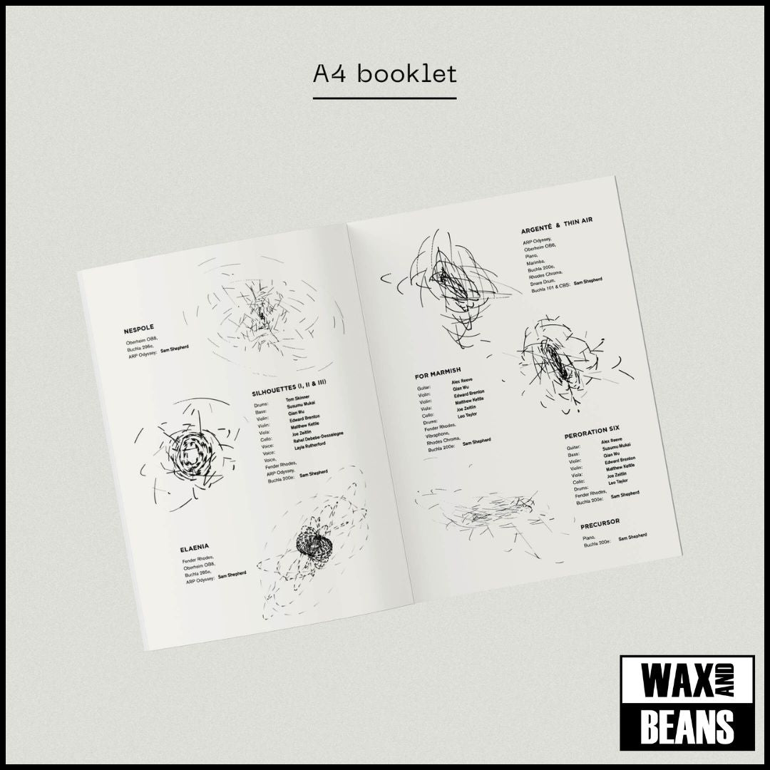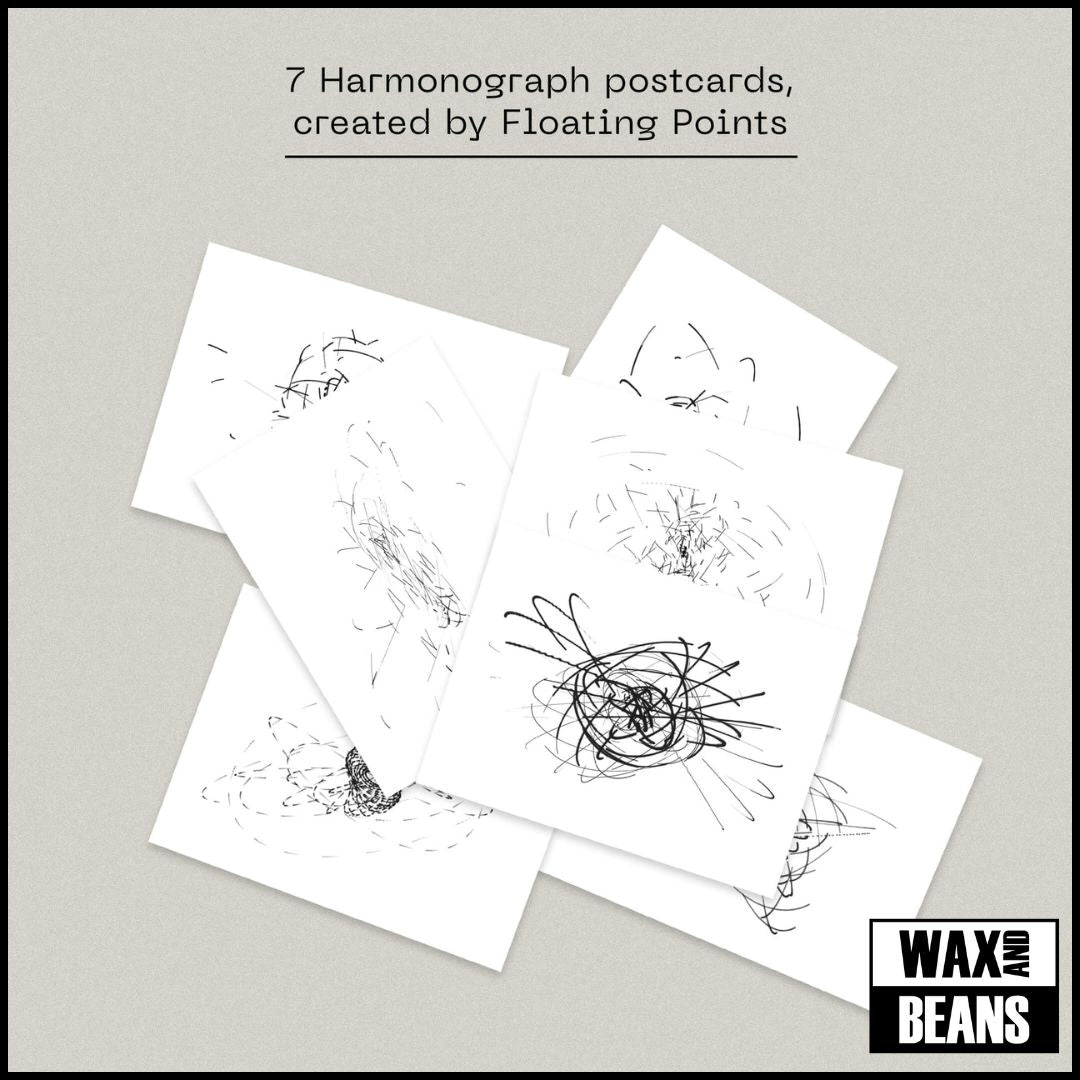 ● 7 x original “harmonograph” postcards created by Floating Points, wrapped in a belly band *
