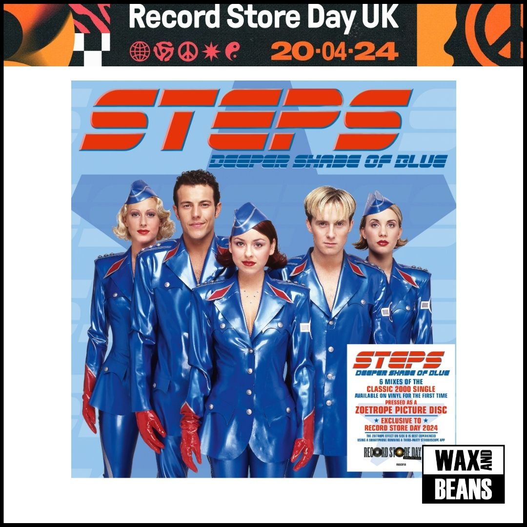 Making their debut appearance at Record Store Day, available on vinyl for the first time an exclusive bespoke collection of remixes to celebrate the iconic single and fan favourite ‘Deeper Shade Of Blue’. Steps are the most successful co-ed group in British chart history. Irresistible and inimitable, their unique blend of perfect pop anthems, dynamic dance moves and a sheer sense of fun has been delighting fans for over 25 years. Originally a top 5 hit in hit April 2000, this 6 track Picture Disc features 6 mixes of the classic single, including a brand new ‘Project K Hacienda Mix’ that has been previously unavailable on any format. The reverse of the picture disc features of Zoetrope of the original and iconic ‘Deeper Shade of Blue’ music video.