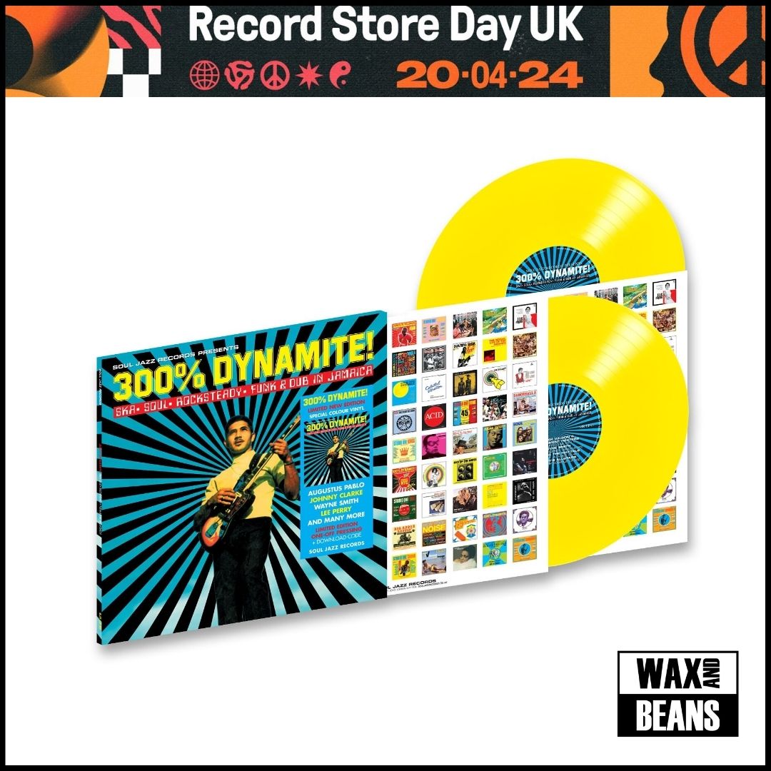 Special new 25th anniversary edition of this most popular and highly-acclaimed of all Soul Jazz Records' Dynamite! series - 300% Dynamite is jam-packed with reggae tunes that crossed-over to become dancefloor hits and are 100% guaranteed to rock any party! Out of print for the last 15 years, this new edition is being released in a one-off limited-edition heavyweight special-edition yellow coloured vinyl pressing + download code exclusively for Record Store Day 2024. This album is fully remastered, relicensed and with new tracks exclusively for RSD 24. Wayne Smith's booming anthem "Sleng Teng", Althea & Donna's worldwide hit 'Uptown Top Ranking', Sister Nancy's classic "Bam Bam", Augustus Pablo, Lee Perry - it's all here as 300% Dynamite joins the dots between reggae, jazz, funk, dub and soul.