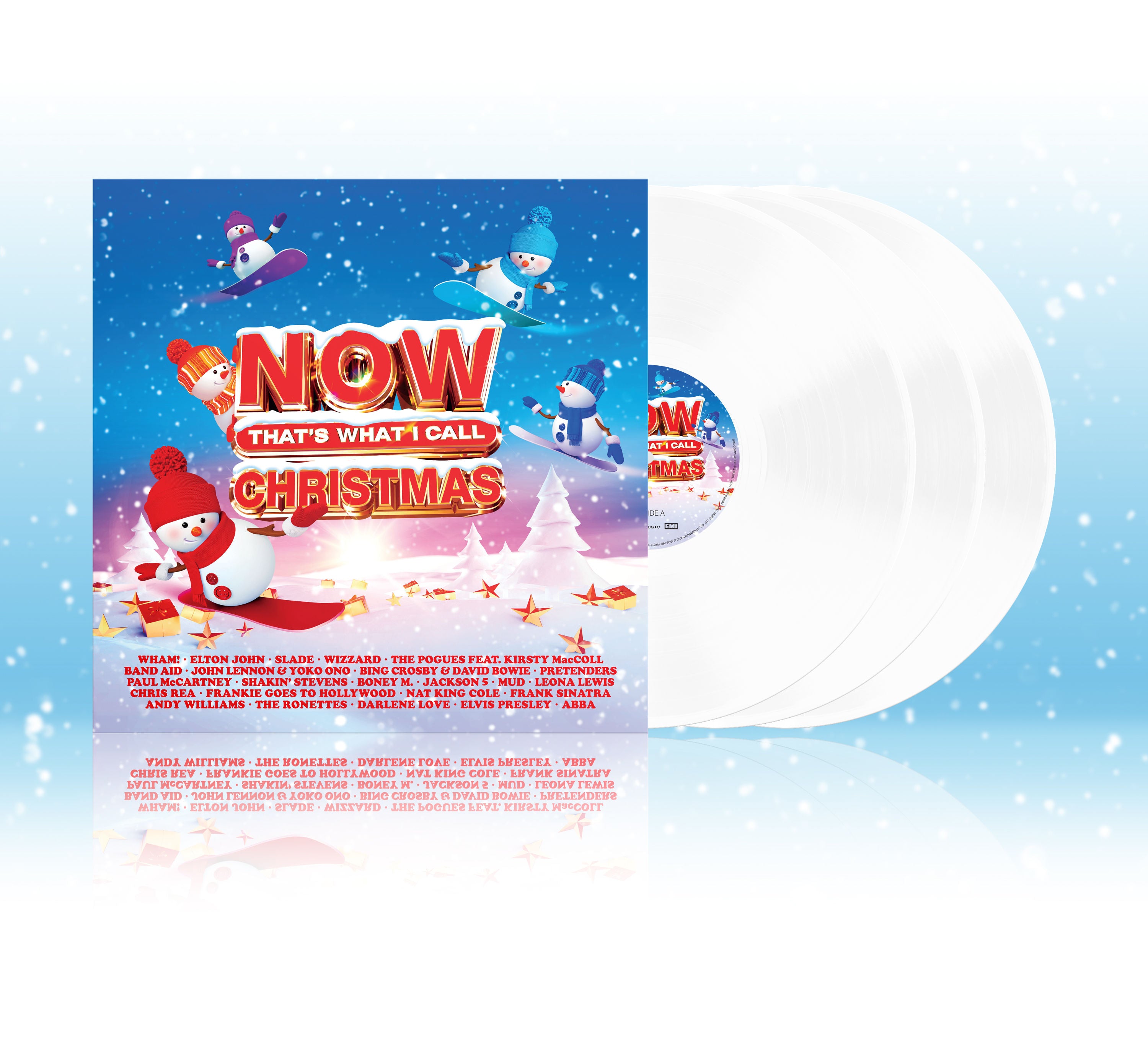 NOW That’s What I Call Christmas is back – snowboarding snowmen lead the all-new look for the seasonal favourite! In beautiful white vinyl, this 3LP compilation presents a massive selection across 47 holiday hits to soundtrack your festivities!